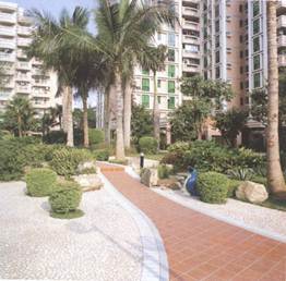鋪地作為空間界面的一個(gè)方面而存在著,像室內(nèi)設(shè)計(jì)時(shí)必然要把地板設(shè)計(jì)作為整個(gè)設(shè)計(jì)方案中的一部分統(tǒng)一考慮一樣,居住區(qū)道路鋪地,由于它自始至終地伴隨著居民,影響著居住區(qū)環(huán)境空間的景觀效果,成為整個(gè)空間畫(huà)面不可缺少的一部分,因此園路是園景重要的一部分。