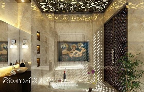 進(jìn)口直紋白大理石浴室 簡單明了