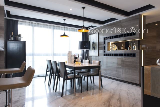 大理石用于現(xiàn)代簡(jiǎn)約風(fēng)格裝修上,主要表現(xiàn)一種現(xiàn)代主義,所以一般選用以白色或者紋理簡(jiǎn)單灰色為底色,灰色或墨色的淺紋大理石鋪貼,既能營(yíng)造出高貴奢華的氣質(zhì),又可以讓整個(gè)居室空間有了濃郁的文化氣息,更加體現(xiàn)出主人優(yōu)雅的生活品質(zhì)。