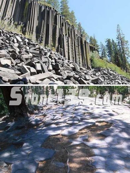 魔鬼巖柱堆(Devils Postpile)位于加利福尼亞州東部猛犸山附近,毗鄰內(nèi)華達(dá)州。這個(gè)形狀極為對(duì)稱(chēng)的柱狀玄武巖構(gòu)造與落差101英尺(約合30.8米)的彩虹瀑布一起,成為魔鬼巖柱堆國(guó)家保護(hù)區(qū)的著名景點(diǎn)。這個(gè)保護(hù)區(qū)由美國(guó)總統(tǒng)在1911年親自簽署法令建立,也是對(duì)建設(shè)大壩提議的回應(yīng),如果這個(gè)提議通過(guò),魔鬼巖柱堆將被炸地粉碎。玄武巖構(gòu)造可以讓游客輕松爬上巖壁和山頂,后者看上去更像是人造鑲花地板。