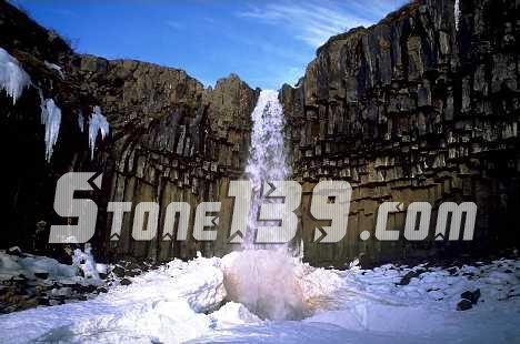 斯瓦蒂佛斯(Svartifoss,冰島語(yǔ)“黑色瀑布”的意思)位于冰島斯卡夫塔費(fèi)德國(guó)家公園,是柱狀玄武巖結(jié)構(gòu)極為罕見(jiàn)而又令人印象深刻的例證,一條落差為39英尺(約合12米)的瀑布傾瀉而下,一年四季都能觀(guān)賞。柱狀玄武巖半山腰構(gòu)造突出了它們?cè)谝曈X(jué)上與傳統(tǒng)教堂風(fēng)琴管的相似性。斯瓦蒂佛斯玄武巖構(gòu)成了讓瀑布飛流直下的峭壁,它們其實(shí)沒(méi)有遭受風(fēng)化,邊緣筆直、鋒利,展現(xiàn)了水晶似結(jié)構(gòu)。這是因?yàn)槠俨嫉牟煌A鲃?dòng)引發(fā)的快速侵蝕造成的,而冰島永久性?xún)鋈谘h(huán)也加速了這個(gè)過(guò)程。