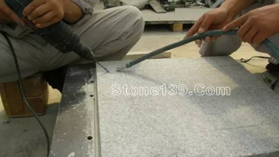 下面講到重點(diǎn),石材是務(wù)必要做背面處理的,目的有三:一是杜絕石材直接與混凝土接觸表面而出現(xiàn)的泛堿白樺現(xiàn)象;二是吸收石材與混凝土因熱膨脹率不同而發(fā)生的微小相對(duì)變位,三是預(yù)防沒(méi)有錨固部分石材發(fā)生裂縫斷裂時(shí)的掉落。(所用到的材料是樹(shù)脂膠,硅砂以及防水密封膠)
