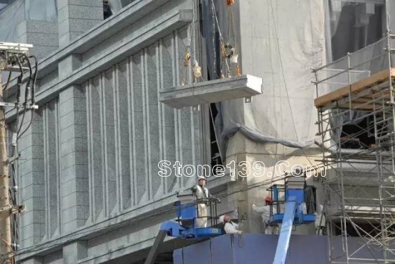 目前預(yù)制混凝土石材反打工藝可以說(shuō)是較為成熟的技術(shù),但在開(kāi)發(fā)初期并不是這樣。經(jīng)過(guò)了石材膨脹率、與混凝土的粘結(jié)強(qiáng)度、大氣暴露、水浸等大量試驗(yàn)后才有了現(xiàn)階段比較完善的石材反打工藝。