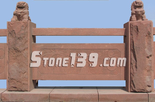 紅砂巖打造的欄桿護欄應用 配合仿古效果及浮雕柱子