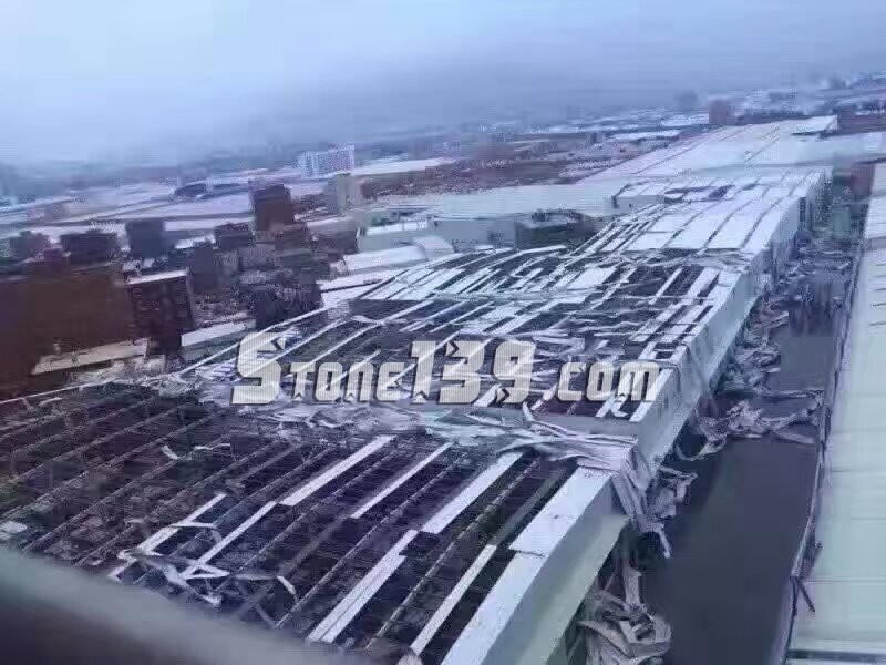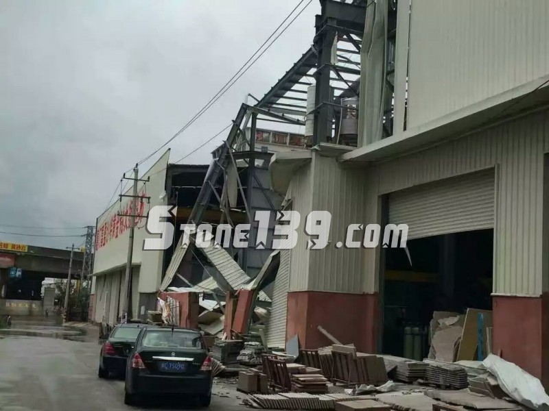 近100萬(wàn)平方米的標(biāo)準(zhǔn)廠房受到不同程度的損壞,小到修修補(bǔ)補(bǔ)幾千塊,大到重新整裝,嚴(yán)重的加上辦公室,行吊等硬件設(shè)施的損壞的修復(fù),對(duì)任何一家公司來(lái)說(shuō)都是一筆不小的費(fèi)用。說(shuō)土點(diǎn)就是,庫(kù)存在那邊,我賣不動(dòng)你,風(fēng)一吹,還得再花錢建房罩著你,這錢啊,石材人花得不僅無(wú)奈還心疼。朋友圈的廠房鐵皮吹起不僅僅是臺(tái)風(fēng)破壞力的證明,更是老板們內(nèi)心的無(wú)奈和破碎。
