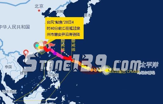 臺風(fēng)“鲇魚”于今天4時(shí)40分在泉州惠安沿海登陸,登陸時(shí)中心附近最大風(fēng)力12級(33米/秒,臺風(fēng)級),中心最低氣壓975百帕。而“鲇魚”前腳剛登陸,第18號臺風(fēng)“暹芭”(xiān bā)后腳已生成。