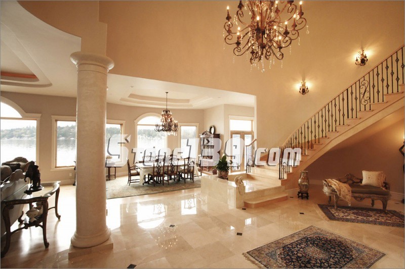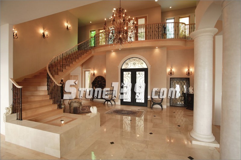 西班牙米黃大理石的別墅內(nèi)景裝飾 從樓梯地板到圓柱,歐式別墅風(fēng)格裝飾。