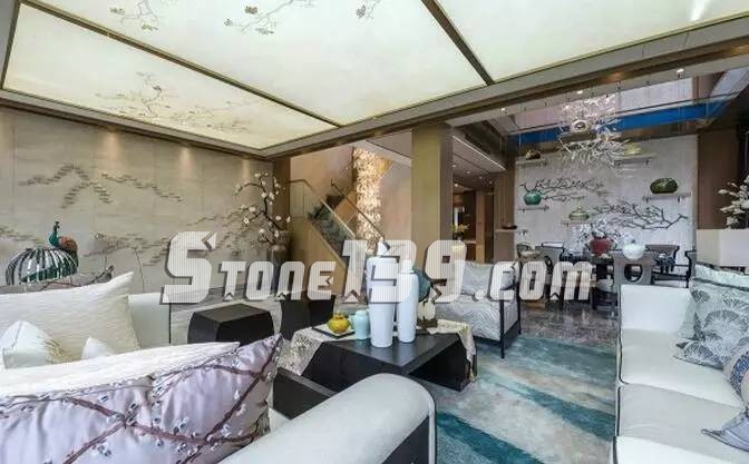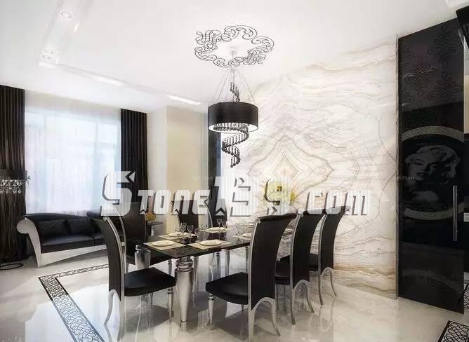 作為客廳的主視覺焦點,背景墻往往是一個裝飾亮點,如果你想自己的家裝飾得比較有個性,可以選擇天然紋理大理石做裝飾墻。天然石材花紋自然,能很好地表現(xiàn)創(chuàng)作意圖,適合在墻面上做藝術(shù)造型。