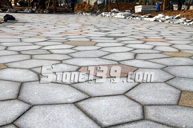 (5)把天然石材/加工成小規(guī)格石材/產品(100*100mm的正方形、邊100mm或80mm的六邊形和菱形等),專用于鋪裝廣場、園林道路等室外地面。其材質、品種、色調、產地和石材/工程板材基本相同,以花崗石材/質為主。在石材/廣場磚業(yè)內,淺色調產品居多(稱主色調產品),黑、紅色調見少(稱配色產品)。所用配色產品一般使用較為高檔和華貴的品種。