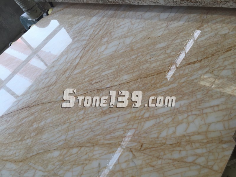 紋路清晰,米黃色的底色,金色的線紋,像蜘蛛網(wǎng)一樣的布滿整個板面,故而得名金蜘蛛。
