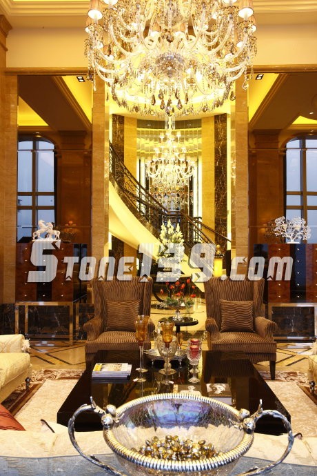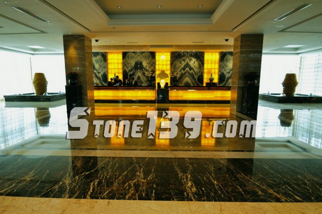 黑金花是天然大理石中非常名貴的石材品種之一,色澤艷麗,裝飾效果能充分體現(xiàn)出其特有的富麗堂皇、華麗高貴之感,一直以來都是設(shè)計界的寵兒。其主要應(yīng)用于室內(nèi)墻面和地面的裝飾,在室內(nèi)裝修中,還常應(yīng)用于電視機臺面、窗臺、門套、石柱、壁爐等。一般用于加工成各種形材、板材,作建筑物的墻面、地面、臺、柱,還常用于紀念性建筑物如碑、塔、雕像等的材料。黑金花大理石還可以雕刻成工藝美術(shù)品、文具、燈具、器皿等實用藝術(shù)品。質(zhì)感柔和美觀莊重,格調(diào)高雅,是裝飾豪華建筑的理想材料,也是藝術(shù)雕刻的傳統(tǒng)材料。