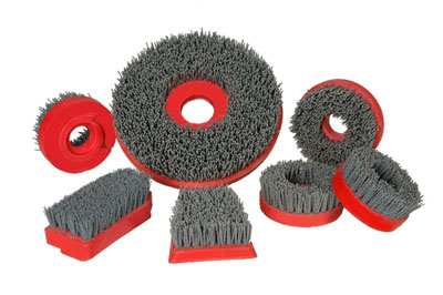 尼龍刷由高品質(zhì)碳化硅與特殊尼龍材料合成研磨絲,牢固地固定一個(gè)刷子底座上制成,主要用于大理石仿古磨刷。鋼絲刷則由不銹鋼絲或低碳鋼絲制作而成,主要用于花崗巖等堅(jiān)硬石材刷磨。混合刷,就由特殊尼龍不銹鋼絲制作研磨刷。