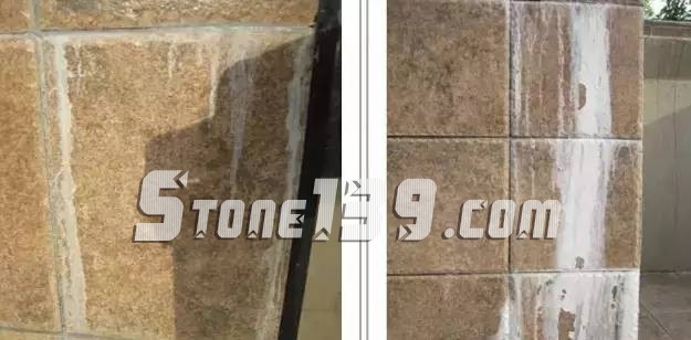 (4)對(duì)于泛堿部位的石材接縫,進(jìn)行重點(diǎn)清理,多余砂漿清理干凈后進(jìn)行嚴(yán)格的硅酮密封膠打膠處理。