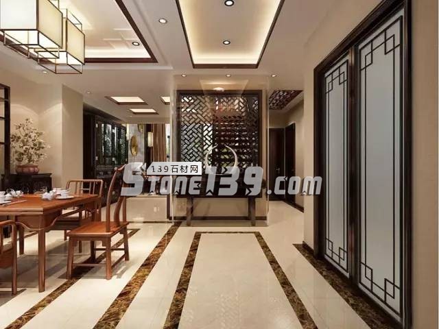 大幅度的石材分隔地面空間,溫雅富麗的氣質(zhì),講究木色、木香的質(zhì)感及味覺感, 中式的燈飾及線條設(shè)計(jì),古樸優(yōu)雅。