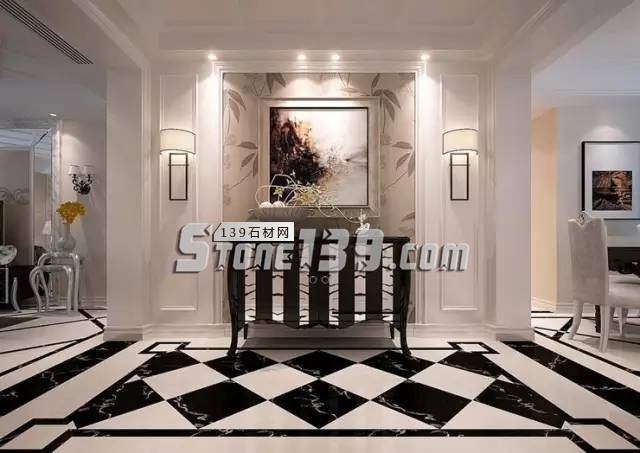 黑白彩度的鮮明對(duì)比之下,將些許精品元素融入其中,以作工精湛的大理石水刀拼花,表達(dá)細(xì)致華美的專屬時(shí)尚。
