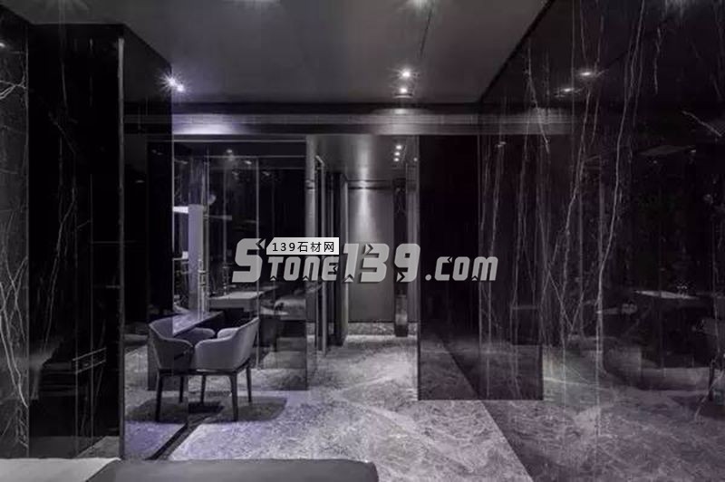 黑色大理石在室內(nèi)空間的表現(xiàn),通常亦高貴亦冷酷。