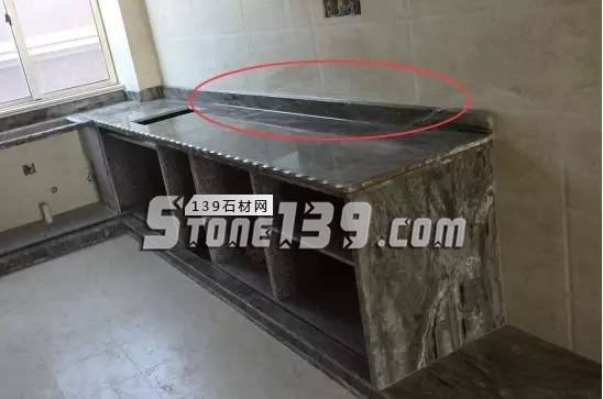 最后值得一提的是,擋水邊最好做成弧形,更容易打掃衛(wèi)生。其中,石英石臺(tái)面做擋水邊是用調(diào)好色的石膠粘好后打磨出形狀,時(shí)間久了存在松動(dòng)脫落的可能性,大理石臺(tái)面做擋水條也是用膠粘的,有縫隙,人造石臺(tái)面做擋水邊整體效果更好,但容易臟,存在滲色的問題。