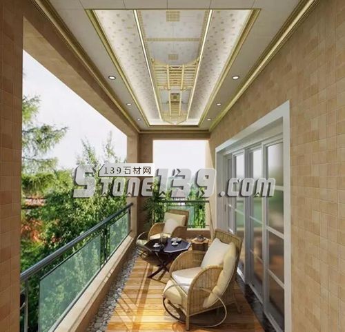 陽臺(tái)吊頂,以馬賽克為設(shè)計(jì)靈感,沒有濃妝重彩,但能完美貼合自然的純粹。同時(shí),吊頂和馬賽克墻磚搭配,整體格局和諧統(tǒng)一。瞬間,小小的陽臺(tái),就成為了馬賽克藝術(shù)的專屬殿堂。