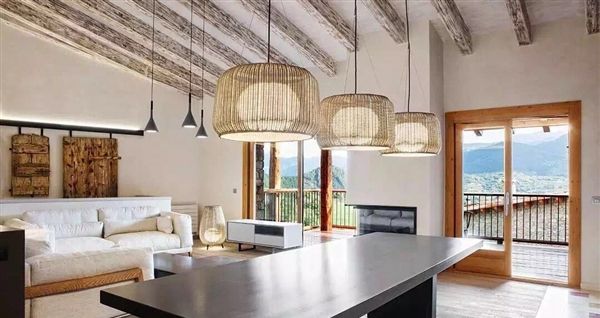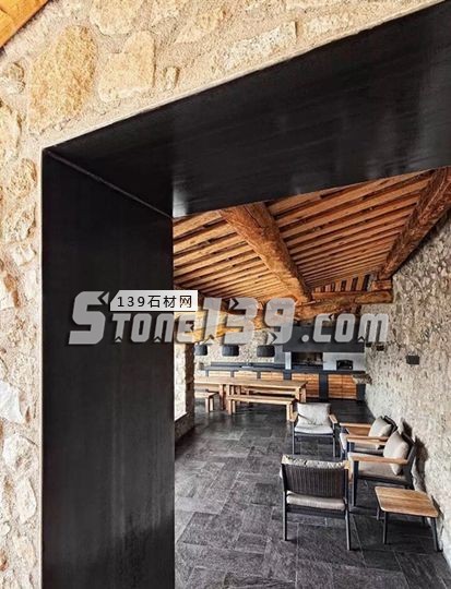 主要打造內(nèi)部墻立面和屋頂。把屋內(nèi)大部分非承重隔墻打掉,最大化的開放空間,保持石材的墻壁,木架結(jié)構(gòu)進(jìn)行粉刷。