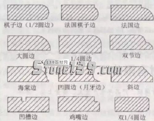 雙級法國邊:由兩個小直邊和中間為1/2圓邊相連組合而成?;蛴蓛蓧K法國邊組合而成。
