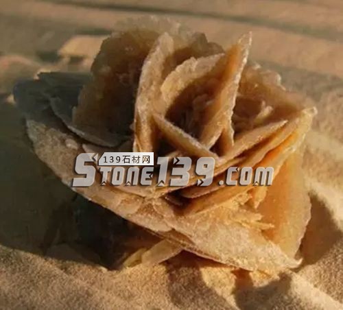 沙漠玫瑰石(DesertRoseStone)的主要成分為含水硫酸鈣,即石膏,若由多片板狀結(jié)晶交叉,形成簇群玫瑰狀、發(fā)生在沙漠地區(qū)的土壤里,就俗稱“沙漠玫瑰”。這是一種燕尾雙晶復(fù)方晶體結(jié)構(gòu),由于它的形狀酷似玫瑰而得名“沙漠玫瑰”。主要出產(chǎn)于美國、墨西哥、摩洛哥等國的沙漠地帶,中國內(nèi)蒙也有微量分布。