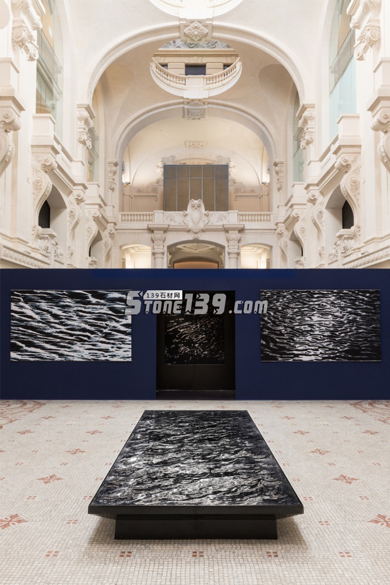 繼2016年倫敦設(shè)計(jì)期間在維多利亞與阿爾伯特博物館展出“petite loire”裝置之后,法國設(shè)計(jì)師mathieu lehanneur的最新作品“liquid marble(液態(tài)大理石)”系列又一次涌入了巴黎裝飾藝術(shù)博物館,本次裝置為慶祝d’days 節(jié)設(shè)計(jì),同時(shí)對officine panera主題“deep waters(深水)”進(jìn)行探索。裝置展現(xiàn)出海洋的超現(xiàn)實(shí)形象,生動地模仿了被微風(fēng)輕輕吹拂產(chǎn)生漣漪的水面與感覺。設(shè)計(jì)師首先利用3D制片軟件建立模型,此后再采用一整塊大理石進(jìn)行制作并手工打磨拋光,正因如此,這一裝置在先進(jìn)技術(shù)與精湛的專業(yè)技藝之間達(dá)到了完美平衡。