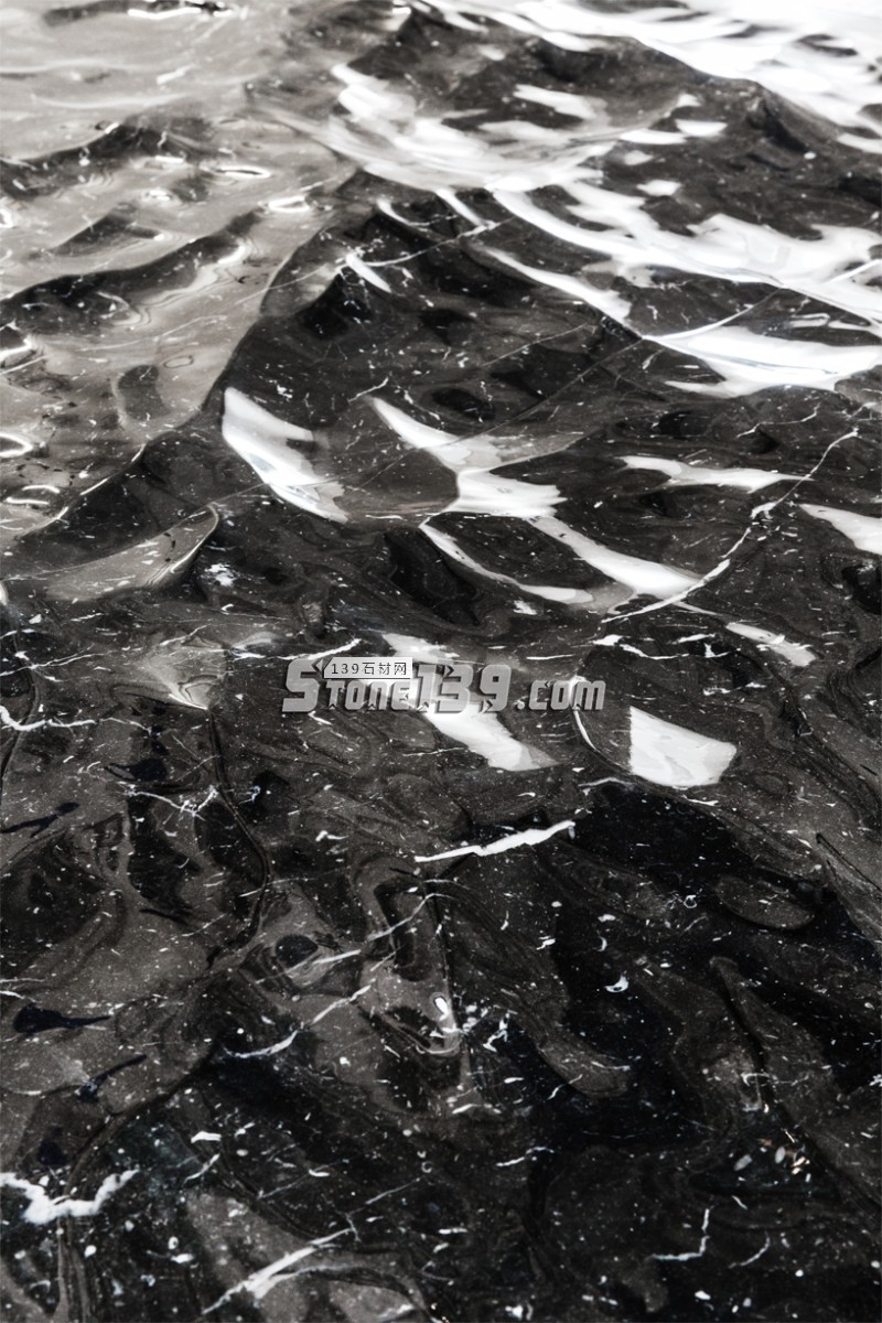 觀看mathieu lehanneur設(shè)計(jì)的“液態(tài)大理石”裝置,就仿佛看到海浪靜靜沖刷海岸的情景,裝置反射并讓自身發(fā)生扭曲,利用大理石很深的顏色捕捉住光線每個(gè)細(xì)微的變化,對自身的深度進(jìn)行強(qiáng)調(diào),突出神秘與敬畏感。裝置底座僅30厘米高,參觀者可以湊近仔細(xì)觀察,無論從高處向下凝視或是在低處看去都非常震撼,引人遐思。