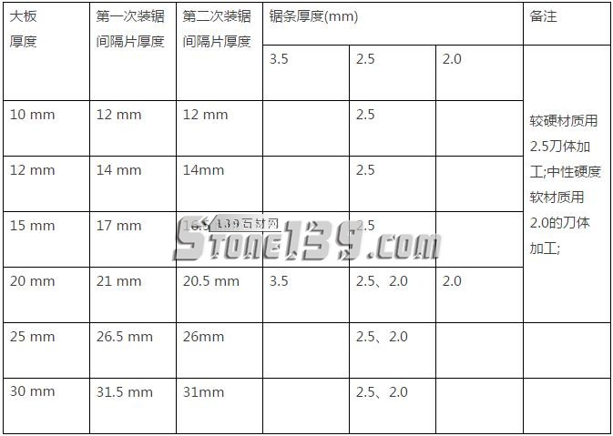 6、大理石鋸條、間隔片的選擇: