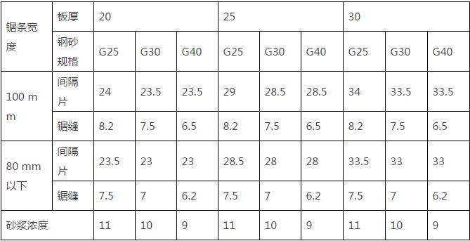 8.1根據(jù)加工單要求和使用的鋼砂鋸條,按下表選用間隔片:
