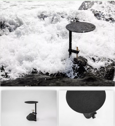 F,一款極富形式感的火山巖茶幾,取材自中國(guó)海南火山群島。作為在地資源,美麗的火山巖在海南火山群島上十分普遍,常被當(dāng)?shù)厝擞脕?lái)建造房屋或制作工具。但由于對(duì)這種材質(zhì)缺乏認(rèn)知等原因,往往在粗暴開(kāi)采中被大量浪費(fèi),甚至破壞生態(tài)環(huán)境。我們就地取材,以當(dāng)?shù)鼗鹕綆r制作成極具形式感的茶幾,在賦予材料新的附加值的同時(shí),提升它的商業(yè)效益,以設(shè)計(jì)帶動(dòng)商業(yè),改善當(dāng)?shù)厣鷳B(tài)環(huán)境和生活條件。在設(shè)計(jì)上,F(xiàn)讓材質(zhì)的原始自然與工業(yè)生產(chǎn)的標(biāo)準(zhǔn)化外形相結(jié)合,為工業(yè)時(shí)代的標(biāo)準(zhǔn)和完美增添一點(diǎn)溫暖和感性。