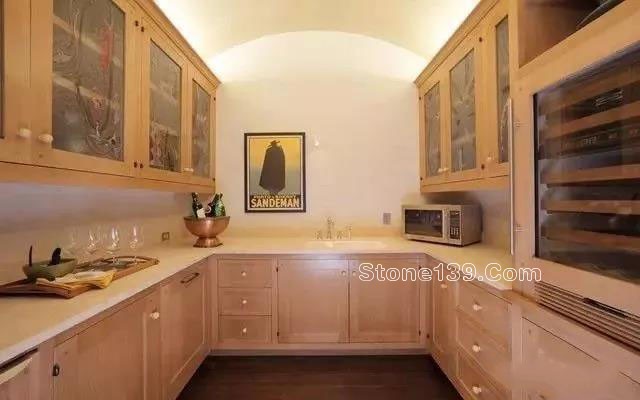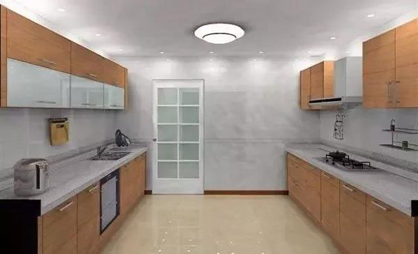 廚房三邊均布置櫥柜設(shè)備,適用于面積標(biāo)準(zhǔn)較高,平面接近方形的廚房。優(yōu)點(diǎn):儲(chǔ)藏空間充足,設(shè)備布置較為靈活;不足:由于三面布置廚房,陽(yáng)臺(tái)的設(shè)置受到了一定的限制。