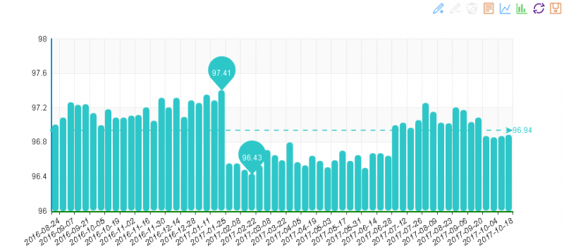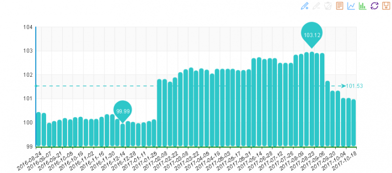 據(jù)“中國·水頭石材指數(shù)”系統(tǒng)監(jiān)測,20171018期石材周價格指數(shù)收報于95.82點,環(huán)比上升0.01點,上升約0.01%,本周石材繼續(xù)價微幅上漲。本周價格波動變化不大,有2類石材價格有變化,就是大理石類及合成大理石,其他2大類價格均與上周持平,保持平穩(wěn)。
