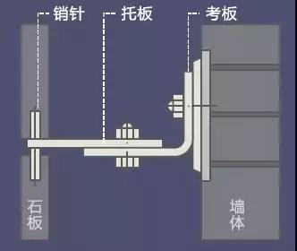 即用銷針和墊板通過(guò)板材邊沿開(kāi)孔連接。此種干掛件及方法于二十世紀(jì)八十年代中期從國(guó)外引進(jìn),為國(guó)內(nèi)干掛件奠定了基礎(chǔ),同時(shí)也是建設(shè)部行業(yè)標(biāo)準(zhǔn)(JC830一1998)的參照件。此種靠銷針受力,在銷孔處應(yīng)力比較集中。據(jù)已建工程反映,在應(yīng)力集中處石材局部有裂碎現(xiàn)象,并且因操作中費(fèi)工、費(fèi)時(shí)、費(fèi)料等因素,現(xiàn)已逐漸被其他方法代替。