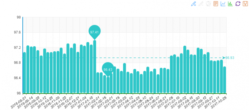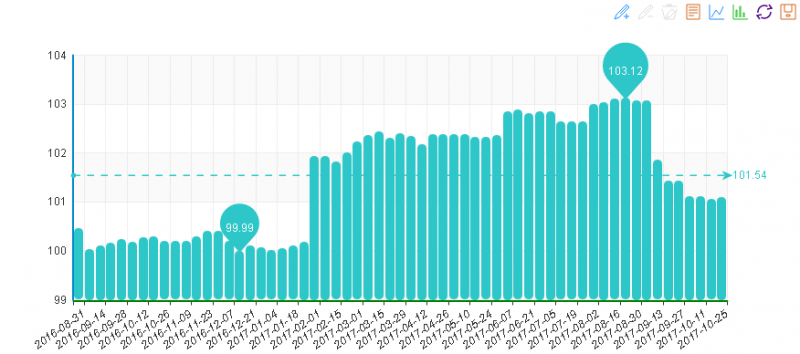 據(jù)“中國·水頭石材指數(shù)”系統(tǒng)監(jiān)測(cè),20171025期石材周價(jià)格指數(shù)收?qǐng)?bào)于95.78點(diǎn),環(huán)比下降0.03點(diǎn),下降約0.04%,本周石材價(jià)格小幅下跌。本周價(jià)格較上周波動(dòng)變化較多,出了其他石材類價(jià)格保持不變外,其他3類價(jià)格均有波動(dòng)變化,其中大理石類價(jià)格環(huán)比下降,花崗石及合成大理石環(huán)比上升。
