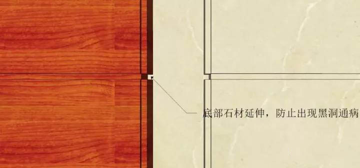 底部石材延伸,防止出現(xiàn)黑洞通病