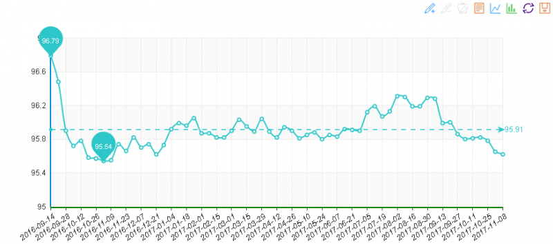 據(jù)“中國(guó)·水頭石材指數(shù)”系統(tǒng)監(jiān)測(cè),20171108期石材周價(jià)格指數(shù)收?qǐng)?bào)于95.62點(diǎn),環(huán)比下降0.03點(diǎn),下降約0.04%,本周石材價(jià)格繼續(xù)微幅下跌,價(jià)格指數(shù)一路走低。本周價(jià)格變化的僅有大理石,其他石材價(jià)格僅與上周持平。本周大部分石材品種價(jià)格穩(wěn)定,部分品種價(jià)格隨市場(chǎng)需求正常浮動(dòng)調(diào)整,大理石大板價(jià)格的下跌,帶動(dòng)本周石材價(jià)格呈現(xiàn)波動(dòng)下調(diào)的趨勢(shì)。