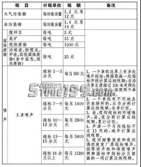 ▼環(huán)保稅稅目稅額表