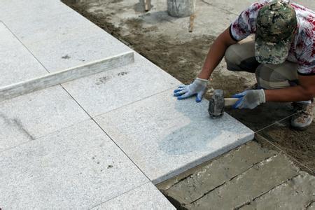 火燒板正式鋪貼:在正式板塊鋪貼時,先在水泥砂漿結(jié)合層上滿澆一層水灰比為0.5的素水泥漿,再將火燒板放置在水泥砂漿上用橡膠錘輕輕敲擊火燒板塊中間,使水泥砂漿振動擠壓密實。第一塊麻石火燒板鋪貼合格后,翻開火燒板,檢查砂漿結(jié)合層是否平整、密實。如果有空鼓現(xiàn)象,必須要增補砂漿,然后將板塊輕輕地對準原位放下,用橡皮錘輕擊放于板塊上的木墊板使板平實,根據(jù)水平線用水平尺找平,接著向兩側(cè)和后退方向順序鋪貼。鋪貼時必須隨時進行檢查,如果發(fā)現(xiàn)有空鼓現(xiàn)象,必須按照前面的步驟進行二次鋪貼。