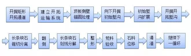 ▲圖10.地下大理石礦山開拓和荒料開采作業(yè)流程