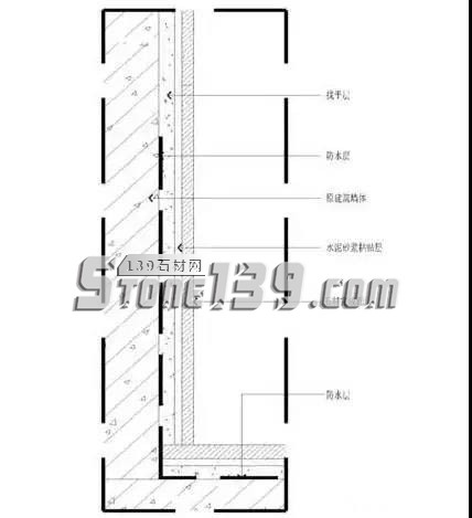 淋浴房墻地面石材鋪貼前,各面防水施工高度、質(zhì)量必須符合要求,石材鋪貼采用濕貼施工工藝,石材鋪貼完成后,待過了養(yǎng)護(hù)期,做地面蓄水試驗(yàn)。