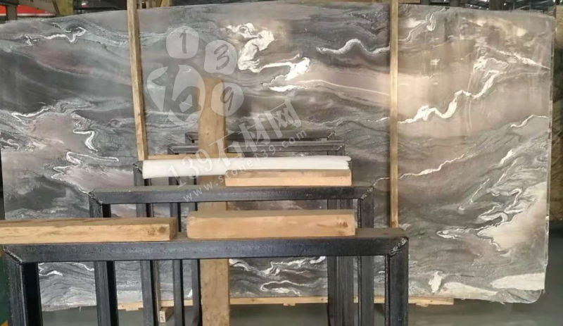 第一次在市場上見到這個大理石是大板的形象存在,石材荒料小編是不懂看的,不過大板的漂亮與否小編還是有點審美水平的,所以覺得這個版面的紋路有點亂,不知道該用在何處,反正大面積用會讓頭腦凌亂,腦袋短路崩潰之類的。