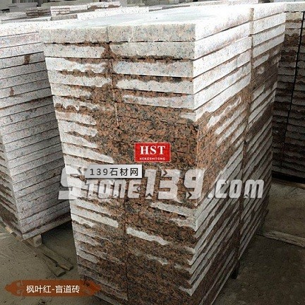 楓葉紅深紅盲道磚,顏色深紅,醒目;耐用性強,常見于道路兩旁的人行道、公園人行道、校園人行道..