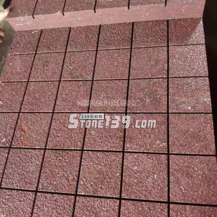 雞血紅小方塊 自然面馬蹄石 荔枝面地鋪