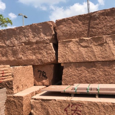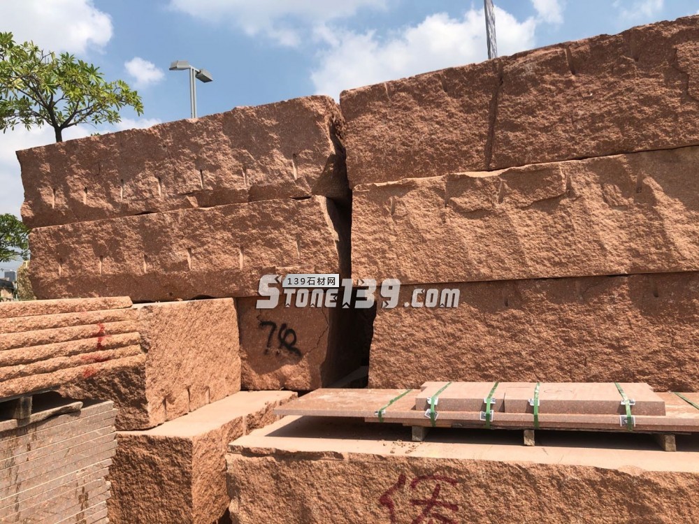 福建水頭市場光澤紅荒料堆場 海西荒料市場 花崗巖 光澤紅