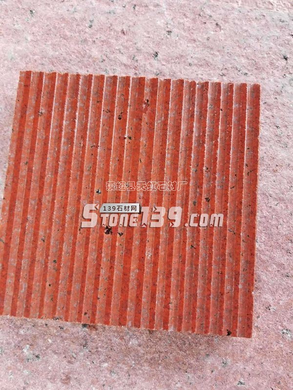 中國紅拉槽 鋸齒面 橫向拉槽 倒角拉槽拼圖案 鋸齒面 流水石材 中國紅花崗巖