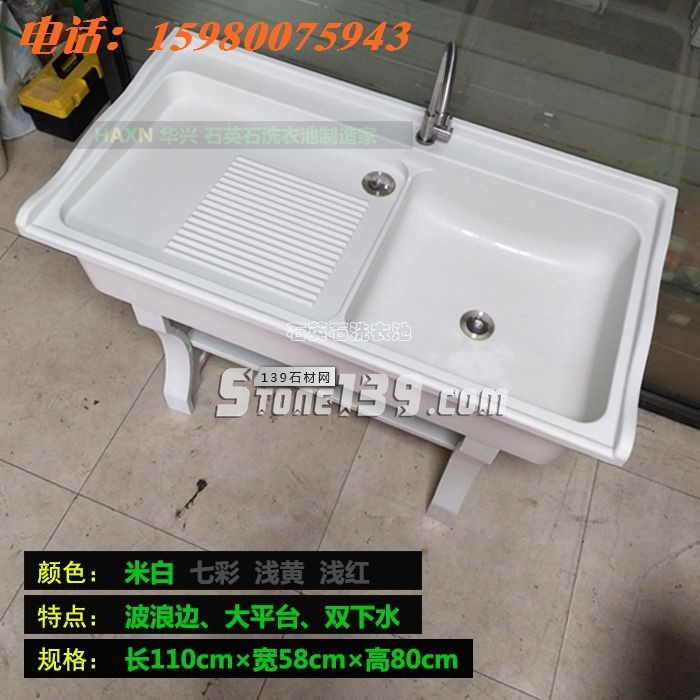 石英石洗衣池(米白波浪邊大平臺(tái)雙下水)