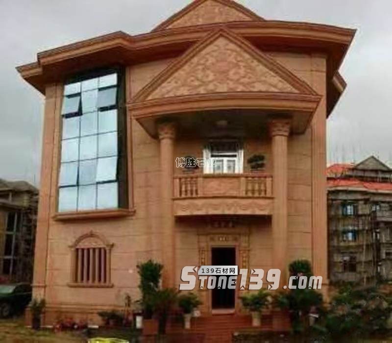 荔枝面 拉絲面 干面 濕面效果 紅色石材外墻別墅裝飾應用 映山紅花崗巖 不錯的選擇