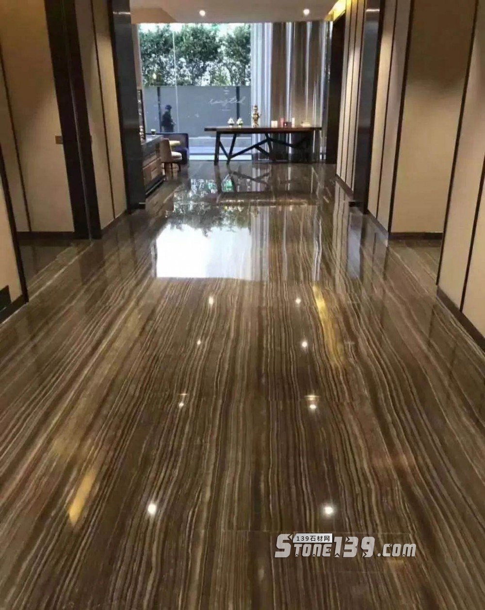進(jìn)口咖啡色木紋大理石地面應(yīng)用 正切反切紋路對(duì)比