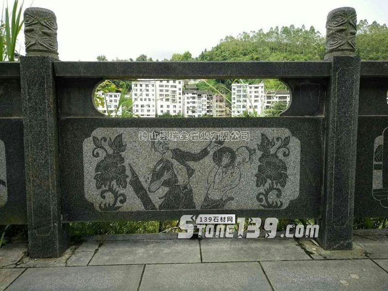 戶外庭院石材浮地雕刻石欄桿板石雕青石欄板線雕圓雕護(hù)欄圍欄黑色420