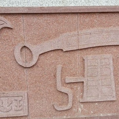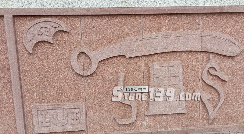中國紅浮雕 (歷史文化廣場(chǎng)石材場(chǎng)景浮雕) 荔枝面 機(jī)切面 噴砂面